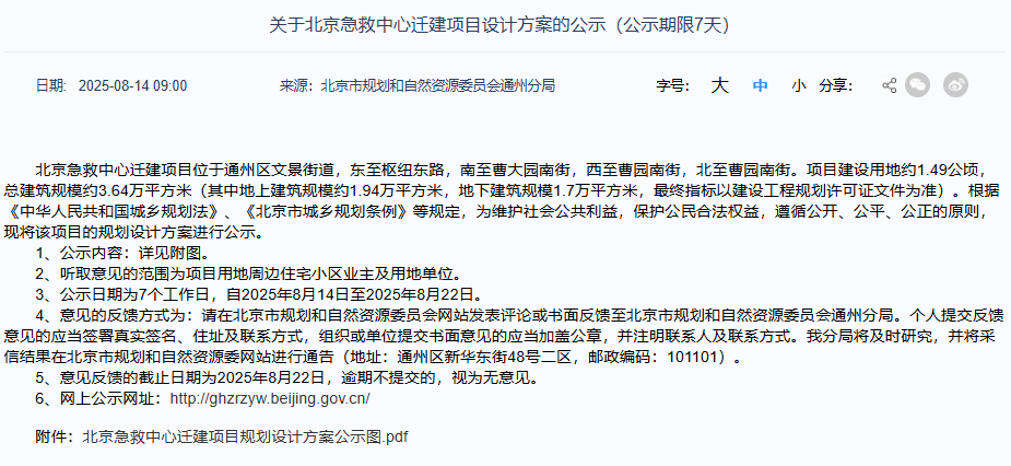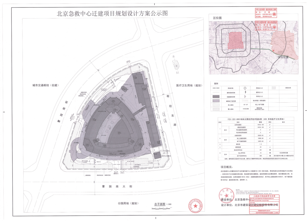 此前,市规划自然委发布了“关于北京急救中心迁建项目设计方案的公示”。
