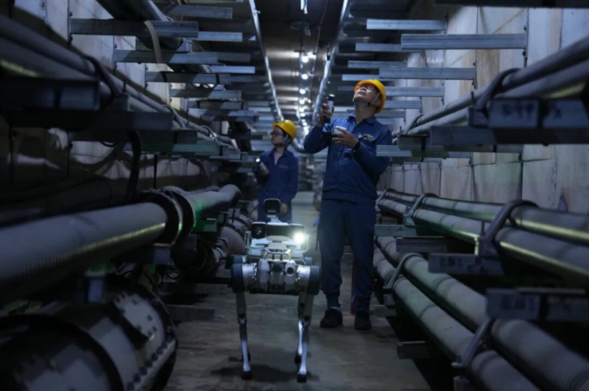 南方电网广东江门供电局利用四足机器狗在地下管廊开展电力电缆巡视(黎子源摄)