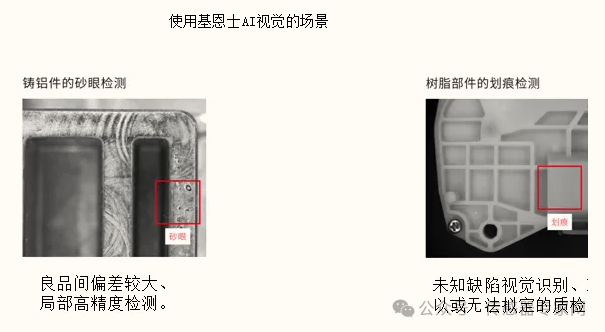 ▲来源:摇橹船科技工业视觉传感器龙头企业基恩士,亦积极推动“AI+传感器”技术落地,认为“AI视觉检测在工业机动化领域也逐渐解决了人工检测成本高、稳定性差、检出率不达标等难题。”通过基恩士先进的光电传感器配合AI算法,能够应对工业场景中更多未知场景的精密检测需求,譬如铸铝件的砂眼大小、树脂件的划痕长短等,是否符合质检要求。