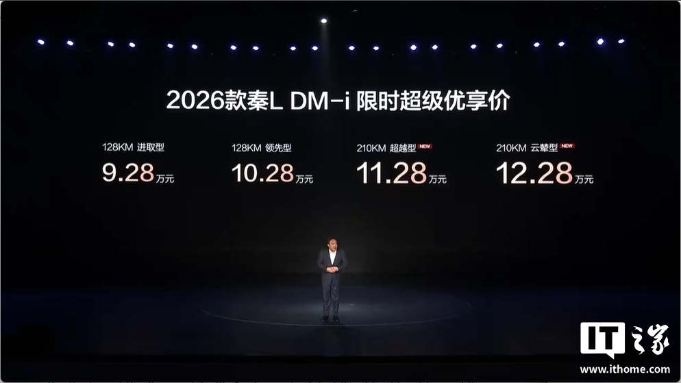 IT之家 1 月 8 日消息,2026 款秦 L DM-i 已上市,限时超级优享价 9.28-12.28 万元。