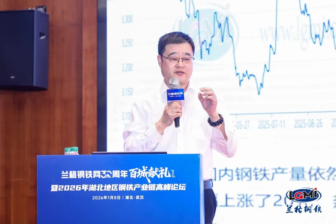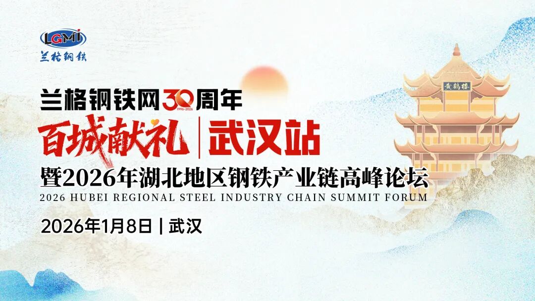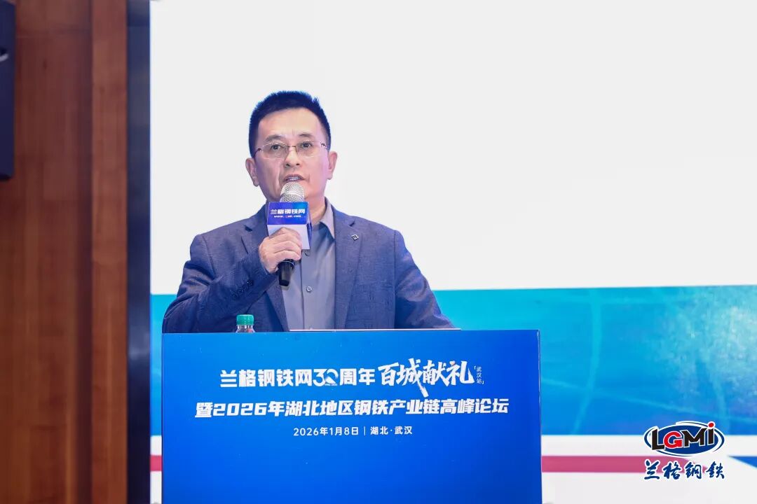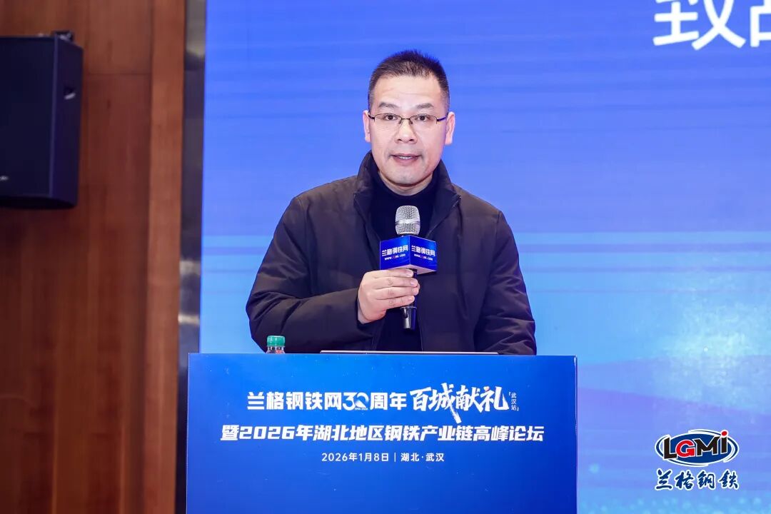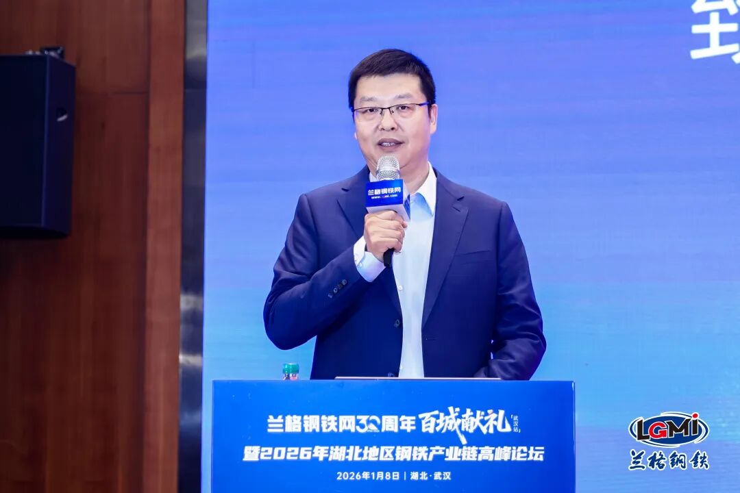 1月8日,由兰格钢铁网主办,宝武集团鄂城钢铁有限公司联合主办,武汉市金属材料流通协会、武汉市黄陂钢材协会支持的“兰格钢铁网30周年百城献礼(武汉站)暨2026年湖北地区钢铁产业链高峰论坛”在武汉成功召开。