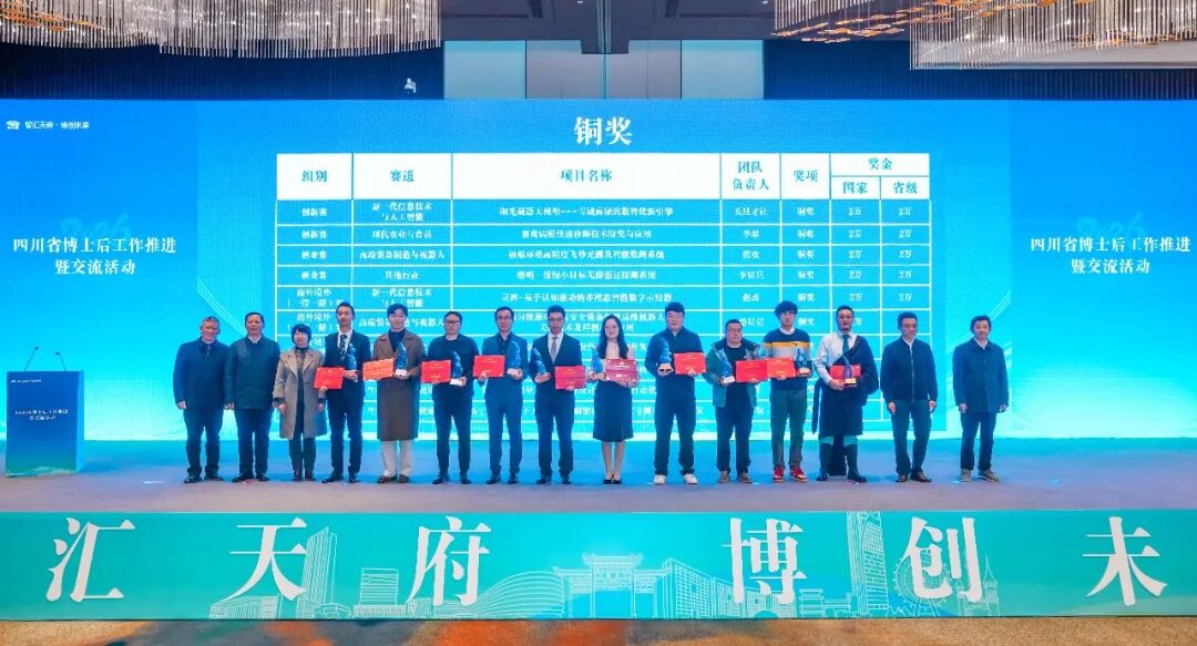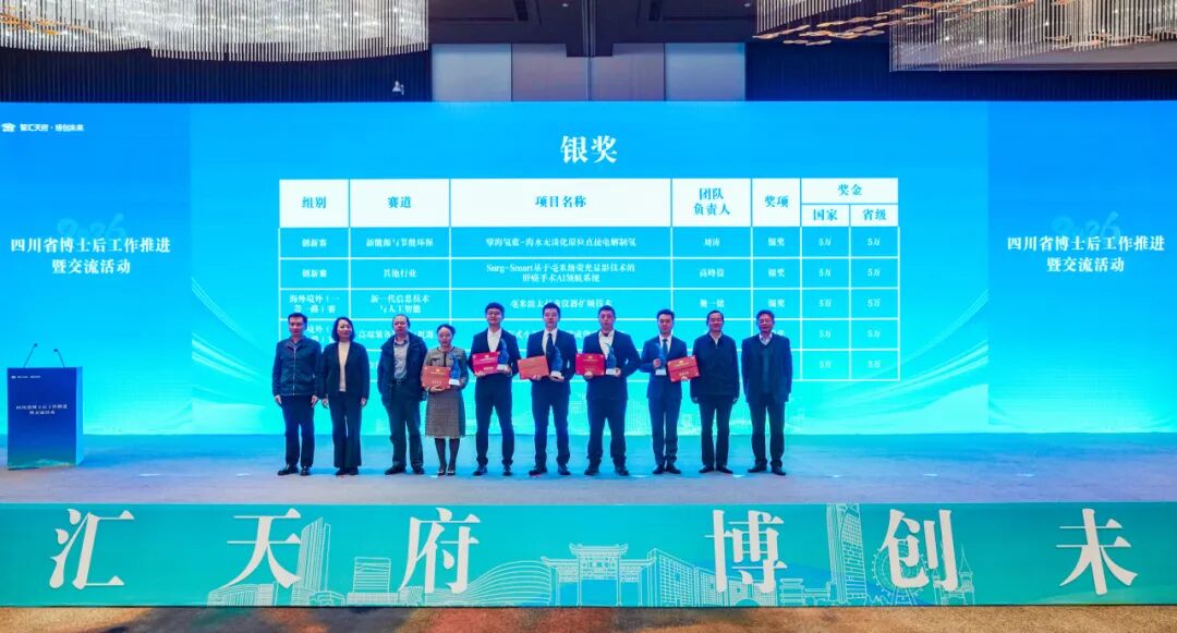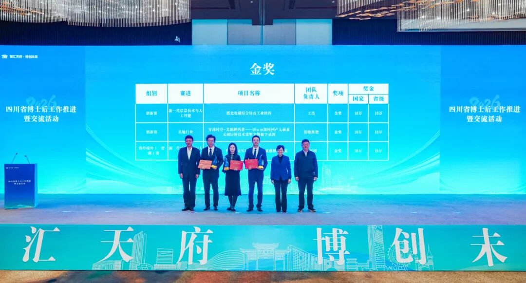 在工作推进会上,通报表扬了第三届全国博士后创新创业大赛组织工作突出单位,并为获奖项目颁奖。金奖项目“摇光电磁综合仿真工业软件”、银奖项目“擘海氢蓝-海水无淡化原位直接电解制氢”进行了现场路演展示。四川大学、成都中医药大学、天府绛溪实验室、泸州老窖集团有限公司等10家单位与博士(后)代表进行入站(职)现场签约。