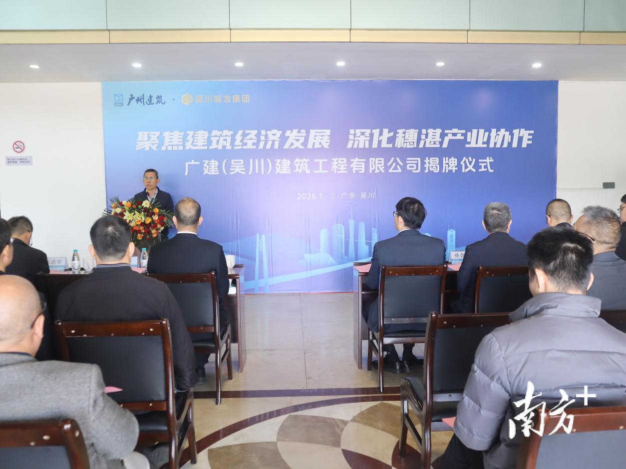 1月8日,广建(吴川)建筑工程有限公司举行揭牌仪式。这是广州-湛江对口帮扶协作向纵深推进、实现产业深度融合的重要成果,公司由广州建筑股份有限公司与吴川城市发展控股集团有限公司联合出资组建。
