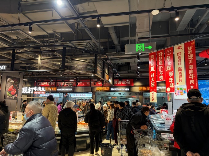 时值农历腊月,年味渐浓。调改后的吾悦广场店,依托丰富的商品矩阵与升级的服务体验,为桂林市民的马年春节采购提供了一站式解决方案。门店打造了“新年爆款诚意直降”主题场景,通过现场品鉴、试吃互动与直观售卖,营造浓厚的节日氛围。年货节爆品已被精心陈列,鲜猪排骨、牛腿肉、羊腿及高品质禽蛋全线备齐,满足家宴核心需求;智利车厘子、红颜草莓、云南高山蓝莓等明星果品,则以鲜甜色泽与健康寓意,为新年果盘增添缤纷色彩。