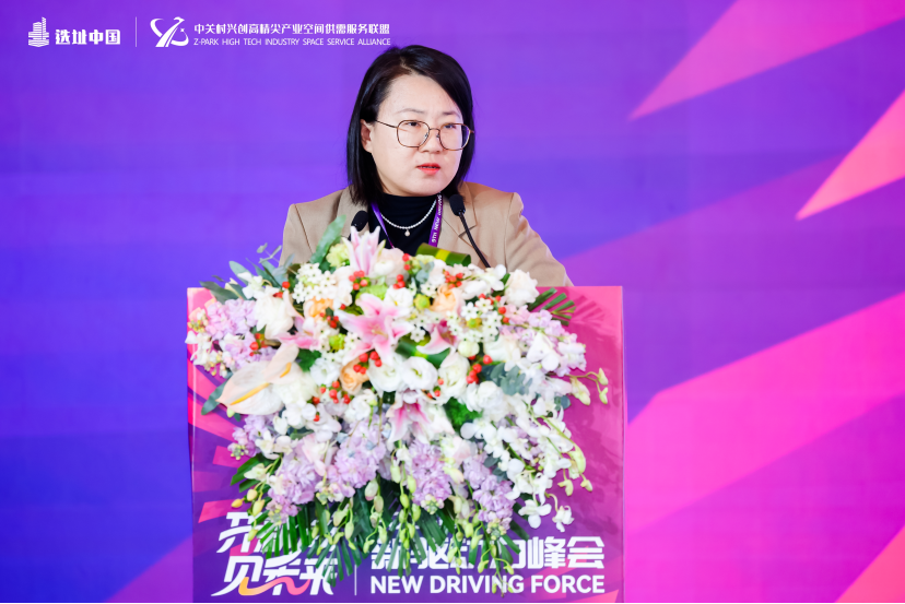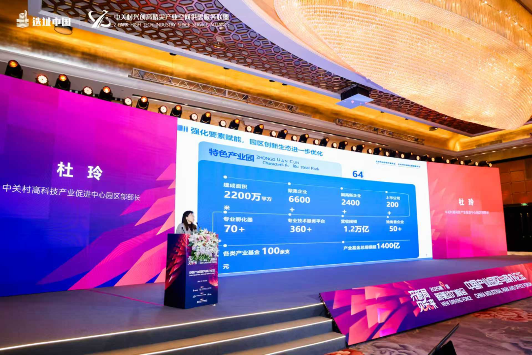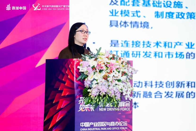中关村高科技产业促进中心园区部部长杜玲介绍了中关村特色产业园建设情况及相关政策解读,目前64家中关村特色产业园集聚科技创新企业6600余家,营业收入超1.2万亿元,已成为科技创新和产业创新融合发展的重要承载地。