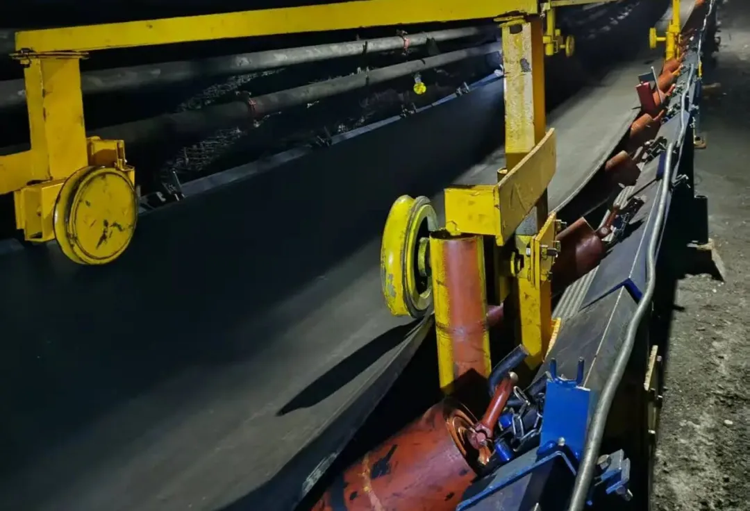 开元公司9715进风巷设计长度1363米,巷道起伏不平,多处出现飘带、跑偏等故障,导致生产效率低下。针对这一难题,他们立足实际、自主创新,利用废旧猴车托绳轮等闲置材料,加工制作出简易有效的压带装置,并将其科学布置于巷道“V”型路段。这一改造显著增强了对皮带的横向约束与纵向定位能力,解决了飘带与跑偏的问题。