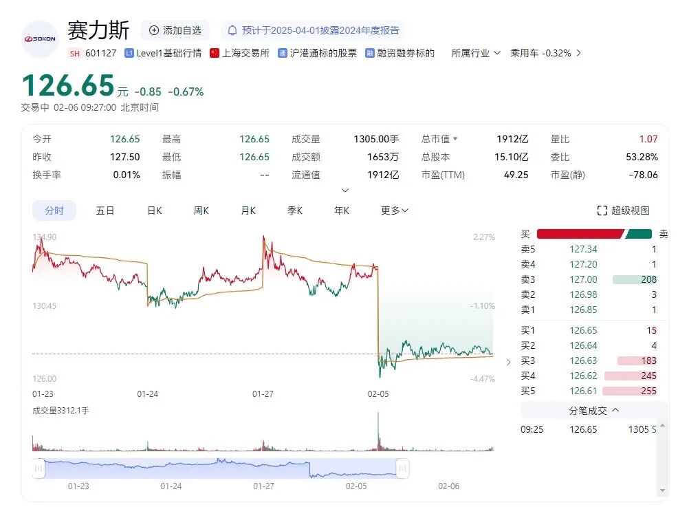 几年前,赛力斯股价不过40元,今天已涨了2倍多。