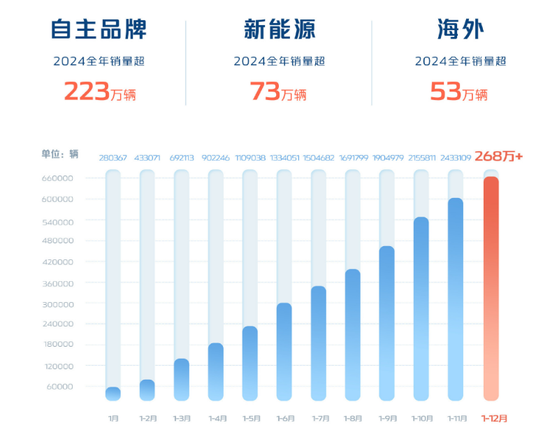 2024年长安汽车销量超268万辆,同比增长5.1%,创下近七年新高。