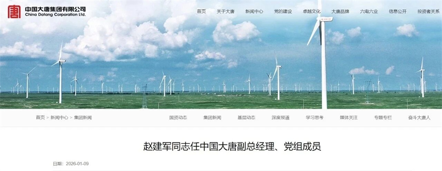 1月9日上午,中国大唐集团有限公司召开领导班子扩大会议,通报了中央关于赵建军同志任中国大唐集团有限公司副总经理、党组成员的决定。上述任职按有关法律规定办理。