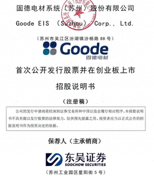 瑞财经王敏 1月9日,深交所官网显示,固德电材系统(苏州)股份有限公司(以下简称“固德电材”)创业板IPO注册生效,保荐机构为东吴证券,保荐代表人为笪敏琦、左道虎。