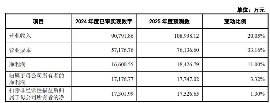 固德电材预测2025年度实现营业收入10.90亿元,较上年增长20.05%;预测2025年度归属于母公司所有者的净利润为1.77亿元,较上年增长3.32%;预测2025年度扣除非经常性损益后归属于母公司所有者的净利润为1.75亿元,较上年增长1.30%。