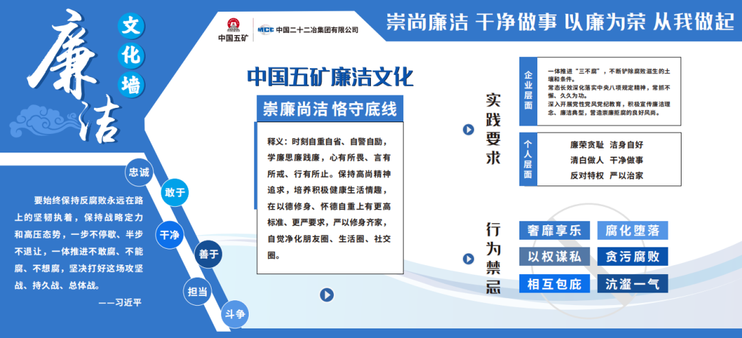 “1”是实现“一个最终目标”,内树风清气正、敢闯敢干的文化氛围,外塑诚信美誉、和谐共赢的企业形象,让廉洁成为项目管理的“标配”,以清廉优势护航高质量发展。