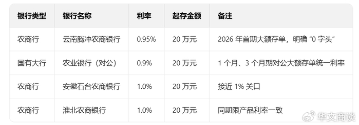 消息显示,目前已有云南腾冲农商行(0.95%)、农业银行(对公,0.9%)等多家银行的三个月短期大额存单利率跌破 1%,中小行更普遍,这反映出货币政策宽松、银行净息差承压与利率市场化深化的叠加影响。