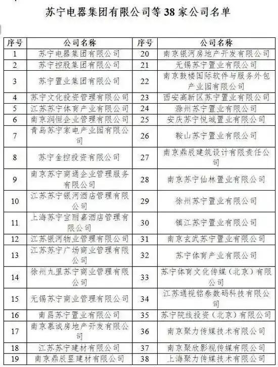 另外,根据《重整计划》,张近东及其配偶刘玉萍需交出旗下38家公司的全部股权,更需承诺将其名下所有个人资产注入为偿债设立的信托计划,以此换取债权人暂停追索其个人担保责任。这意味着张近东为了解决苏宁系的债务危机,已经押上了全部身家。