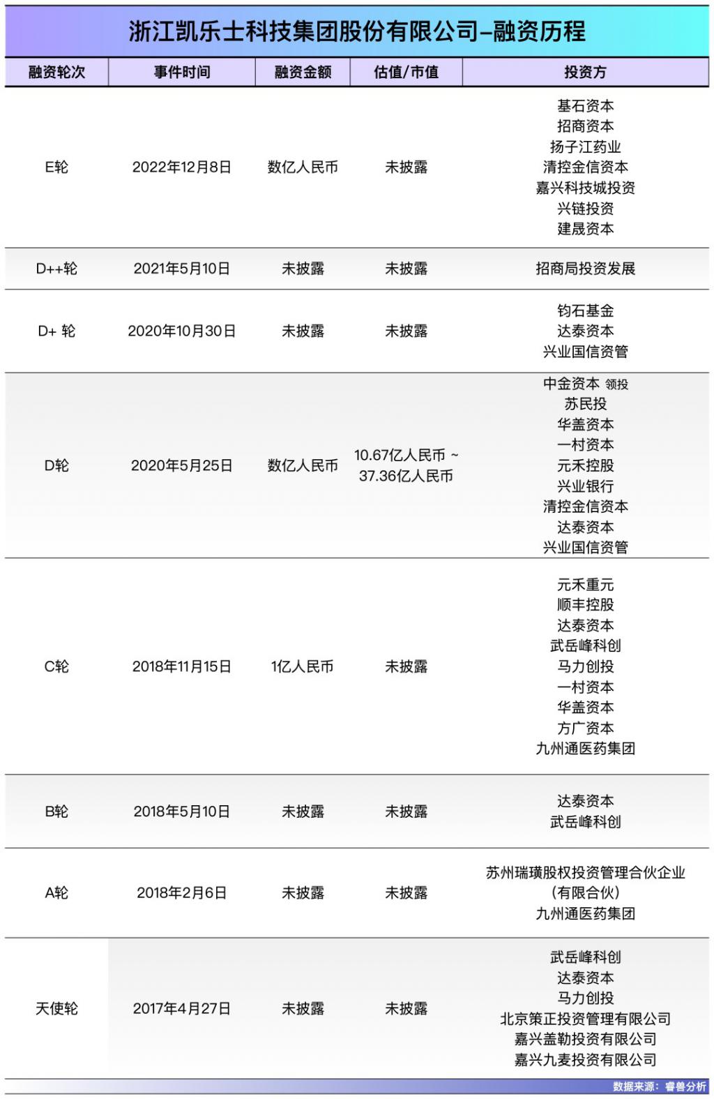 成立当年,凯乐士完成 2200 万元 A 轮融资,投资方包括杨艳 100%控股的嘉兴九麦投资、达泰资本、马力创投、策正资本等。