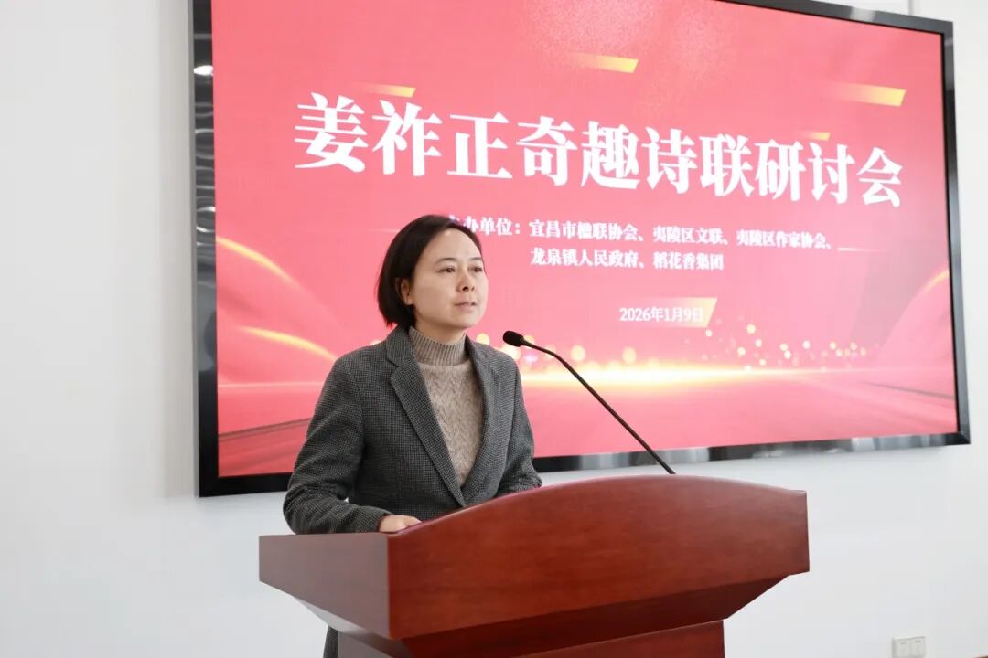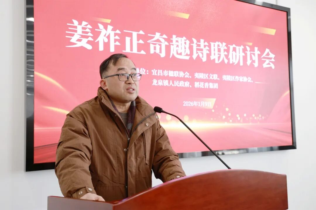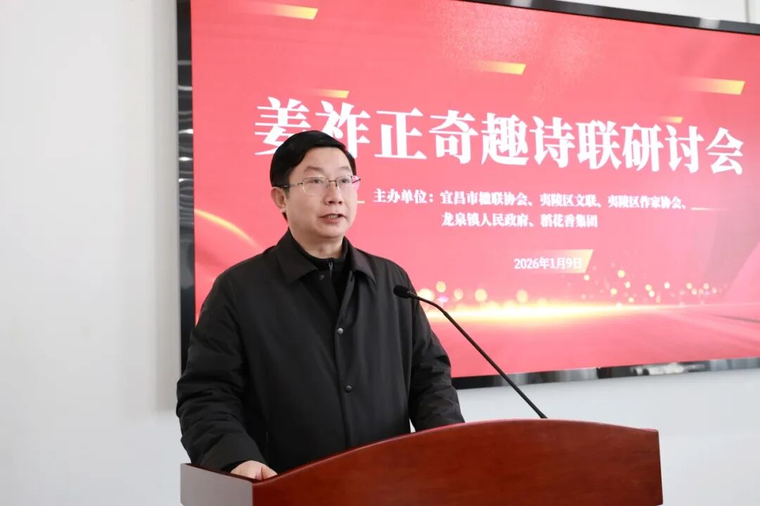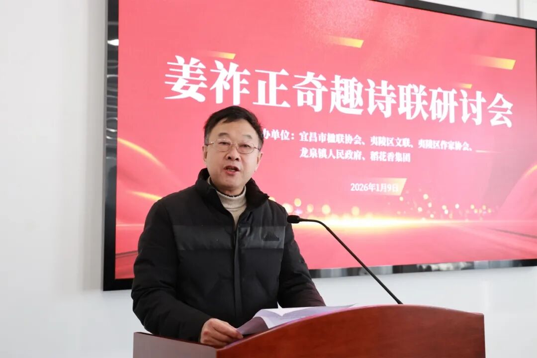 酒城龙泉迎墨客,诗联奇趣醉知音。1月9日,“姜祚正奇趣诗联研讨会”在夷陵区龙泉镇稻花香集团举行,这场集学术研讨、文化展示、乡情联结于一体的盛会,不仅深入研究探讨了姜祚正先生的艺术奇趣与人生智慧,更生动诠释了稻花香与本土文化血脉相连的深厚渊源。