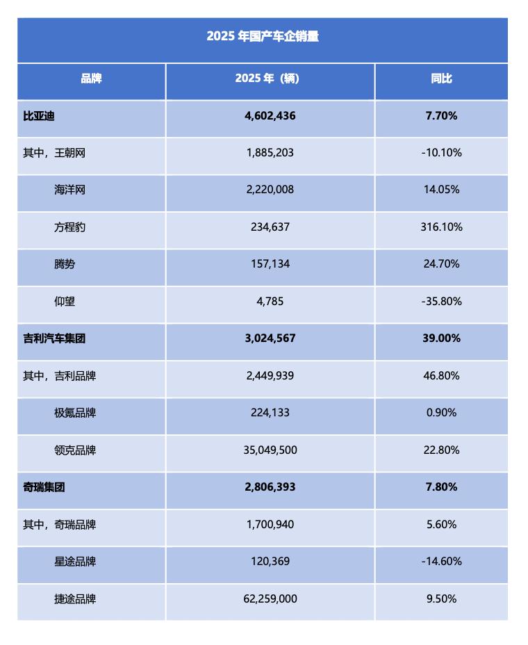 车企的悲欢并不相通!2025年自主品牌销量成绩复盘