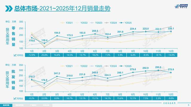 虽然2025年车市未能重现“年末翘尾”行情,但依托新能源汽车与汽车出口拉动,中国乘用车市场实现3.8%的年度同比增长,零售销量定格在2374.4万辆。