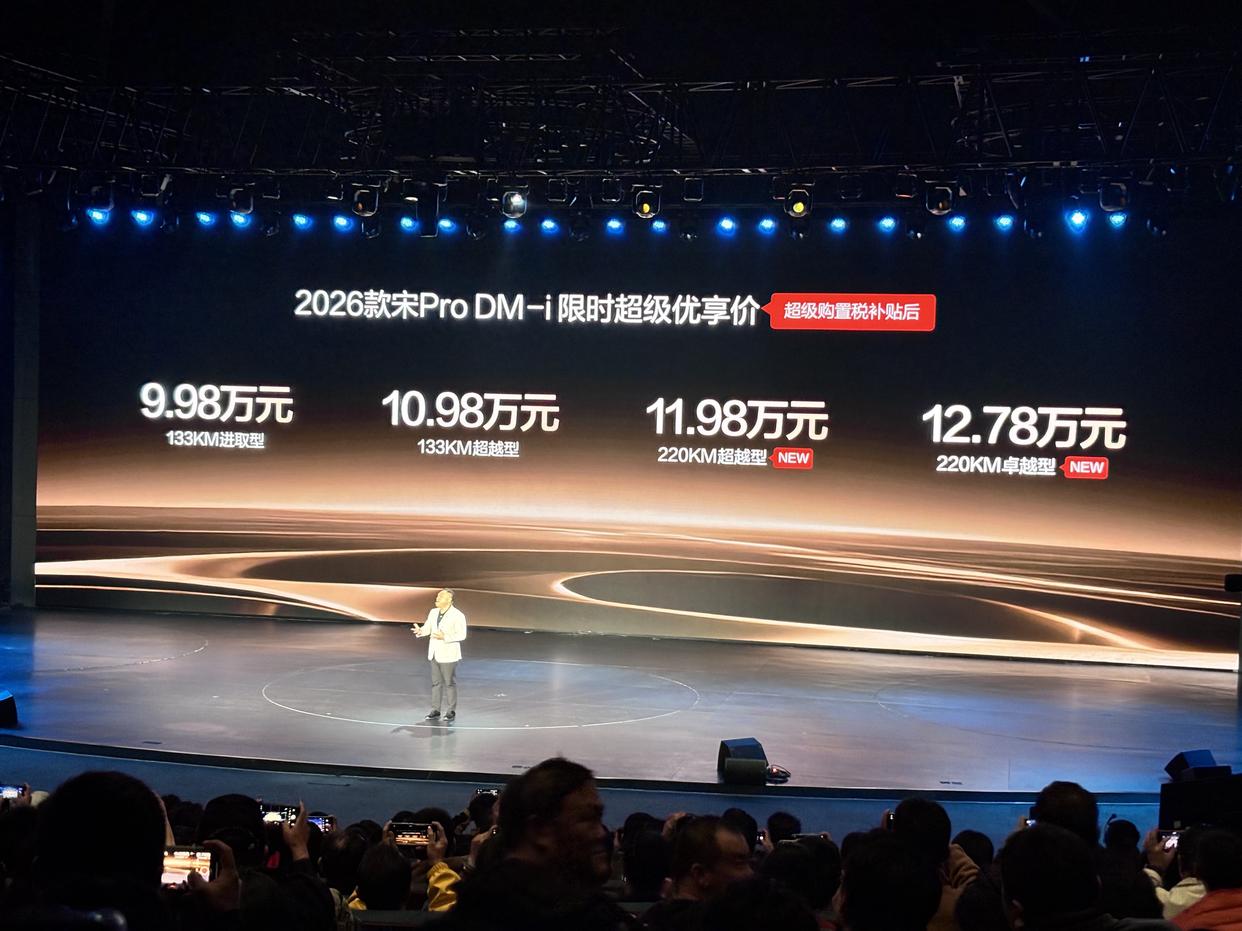 进入2026年,比亚迪“长续航”车型集体出击。1月10日,2026款宋Pro DM-i正式推出长续航版车型,其中220KM超越型补贴后11.98万元,220KM卓越型补贴后12.78万元。