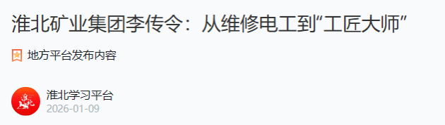 《学习强国》:淮北矿业集团李传令:从维修电工到“工匠大师”