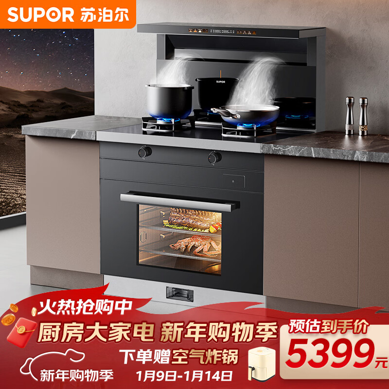 苏泊尔DY10S蒸烤炸一体式变频低噪自清洁油烟机燃气液化气集成灶