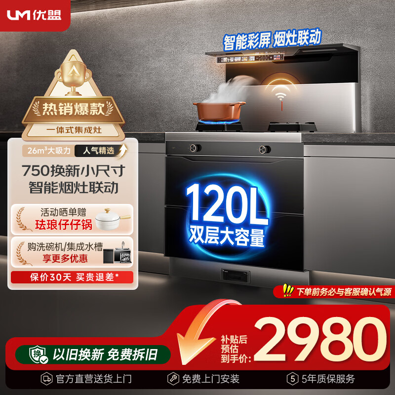 优盟是国民厨电品牌,在集成灶领域同样表现不俗。它最大的特点就是"技术成熟、功能全面、性价比高",产品线非常丰富,从基础款到智能款都有覆盖。很多型号都配备了智能控制、多档调节等实用功能,用起来特别省心。