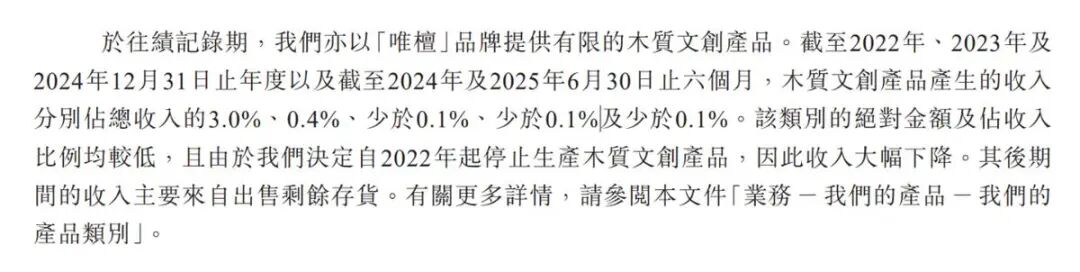 而其主营木质文创产品的“唯檀”由于2022年收入仅占总收入3%,于2022年已经全面停产。