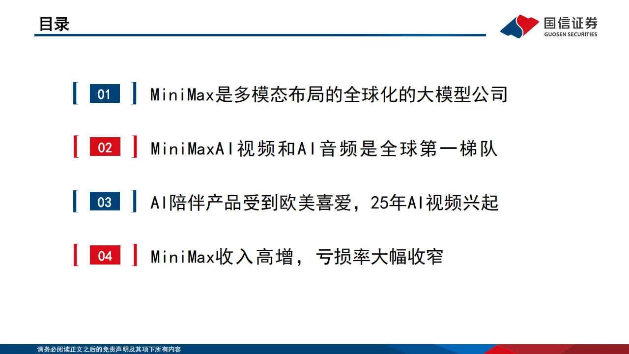 今天分享的是:垂类AI应用专题:Minimax是全球化大模型公司,拥有大语言、视频、音频大模型