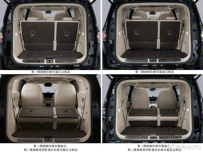第二排航空座椅带电动腿托,还有15cm超长滑移功能,最大腿部空间达到1120mm;第三排膝部空间652mm。虽然空间相比那些新能源大SUV并无优势,但已经比传统的宝马X7这些车空间更大,非商务用途也足够了。