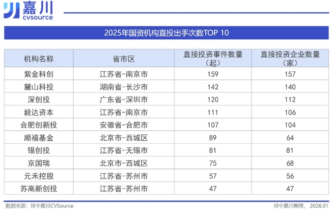 投中嘉川CVSource数据显示,2025年,国资机构直接投资事件达5444起,覆盖企业4989家,涉及金额超过6000亿元,出手次数与投资金额较上年分别增长23%和28%。