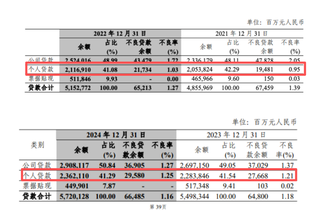 截至2025年6月末,个人不良贷款率较上年末上升0.04个百分点至1.29%;截至2025年9月末,微升0.01个百分点至1.30%。