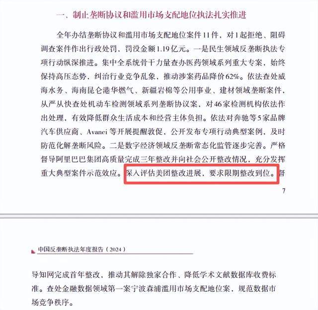 一个鲜见的例子便是,在2025年6月6日,国家市场监管总局(国家反垄断局)发布《中国反垄断执法年度报告(2024)》(下称报告)中,曾将美团作为典型案例,并称,"深入评估美团整改进展,要求限期整改到位",这也意味着,原定于2024年10月完成的整改期已被延长,且美团仍未通过监管部门审核。
