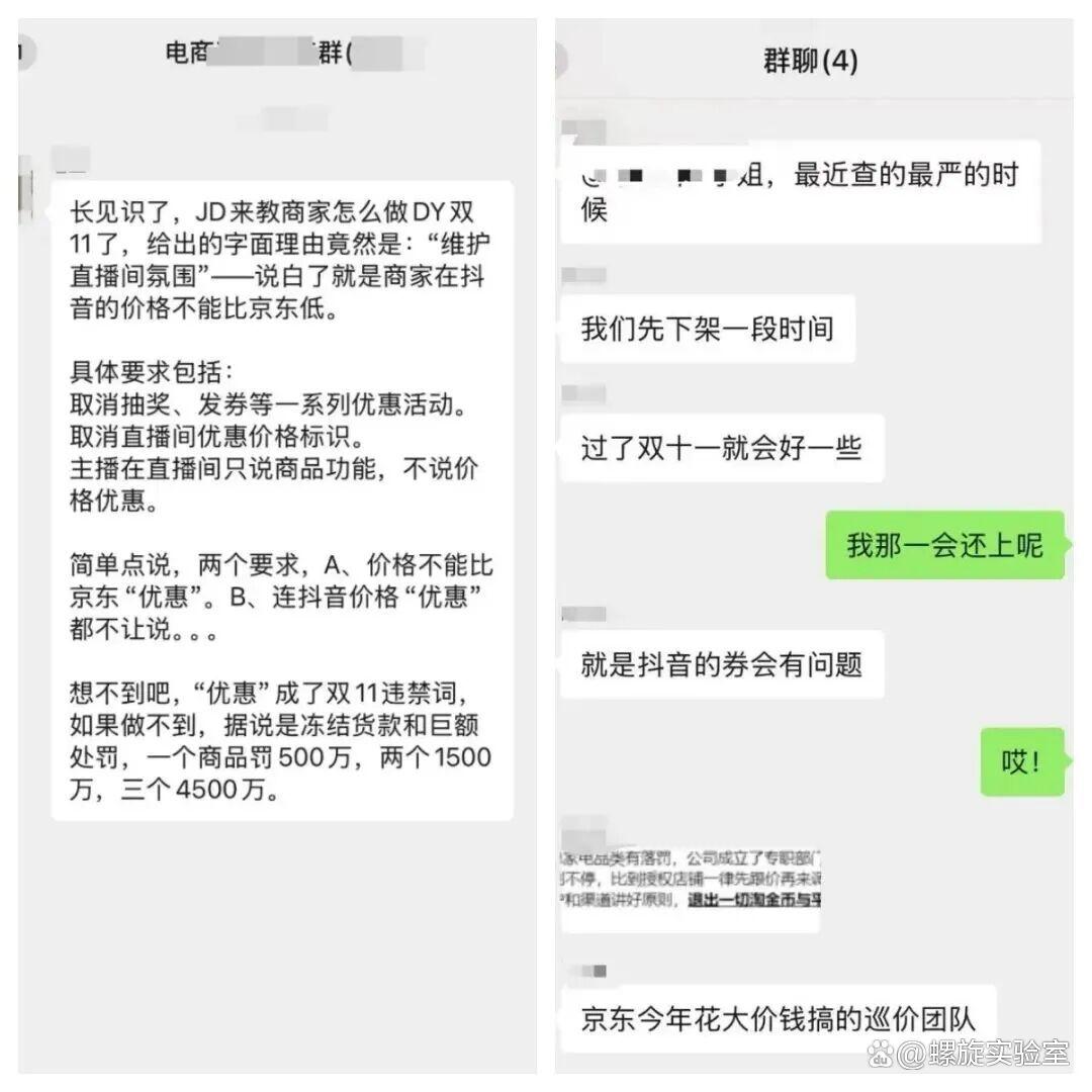还有网传截图显示,京东组建了“巡价团队”对多个电商平台的价格进行巡查监测,一旦发现商家在其他电商平台的最终商品售价更低,该商家就可能会面临罚款。