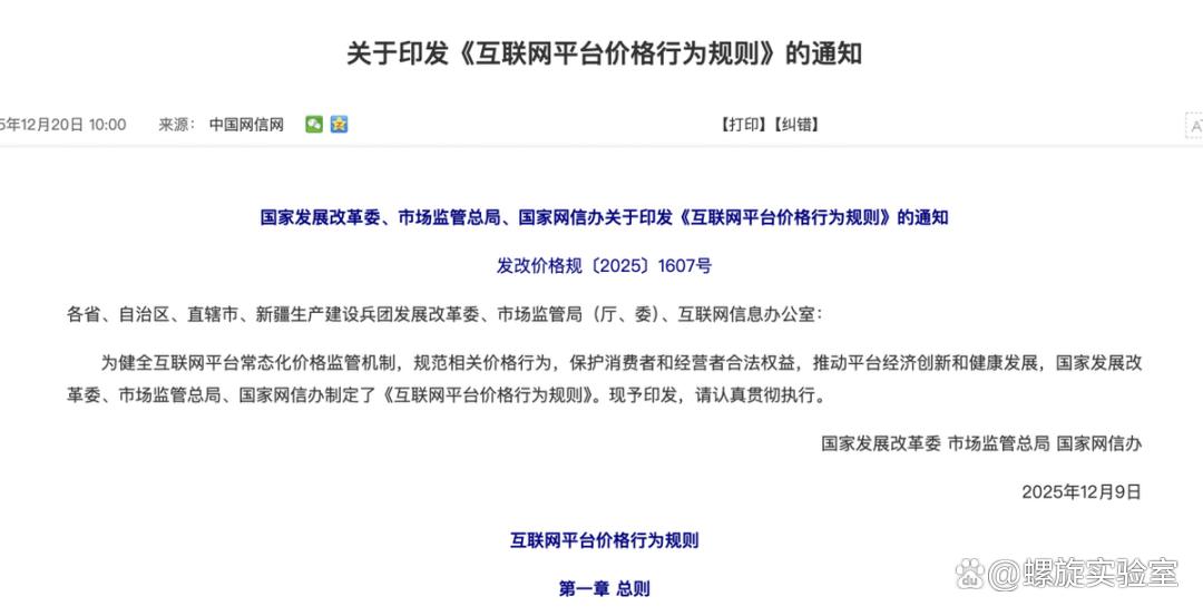 近日,三部门联合发布《互联网平台价格行为规则》,明确禁止平台强制商家降价、强制要求“全网最低价”等,新规将在2026年4月起施行。