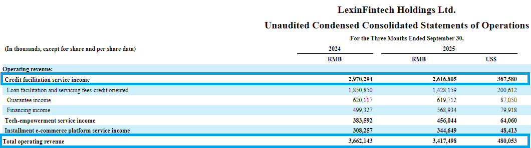 虽然乐信2025年三季度仍实现14.63亿元的净利润,但营业收入的同比下降,已经折射出这种信贷撮合服务的脆弱性。