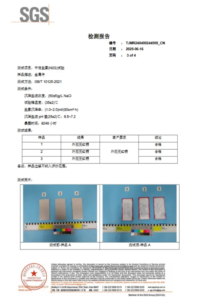 建筑模板常年面临户外日晒雨淋、混凝土酸碱侵蚀,尤其是沿海高盐雾、地下室高潮湿等恶劣环境,传统镀锌模板往往 1-2 年就出现锈蚀,不仅影响施工安全,更增加更换成本。晋钢锌铝镁模板钢采用3%Mg-6%Al合金镀层体系,形成致密的共晶结构保护膜,耐蚀性远超普通镀锌板。经 SGS 权威检测,产品通过9248小时严苛盐雾实验验证。
