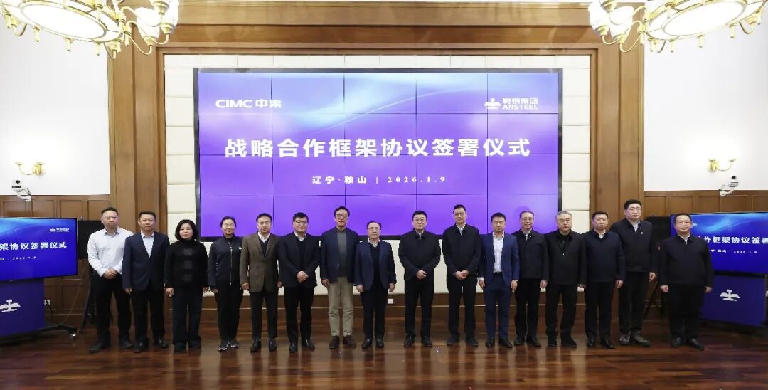 1月9日,中集集团与鞍钢集团在鞍山正式签署新一轮战略合作协议。此次签约标志着双方迈入全方位协同、深层次共赢的全新发展阶段。鞍钢集团党委副书记、总经理郭斌,党委常委、总会计师吴琨宗;中集集团党委副书记、总裁高翔,党委委员、副总裁李胤辉,总裁助理单立坡,携双方有关单位负责人共同出席签约仪式。