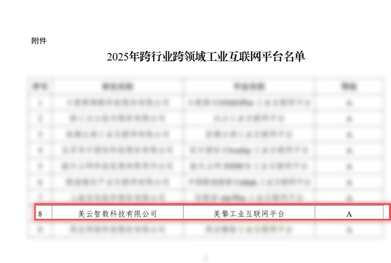 美云智数美擎工业互联网平台凭借卓越的技术创新力、深厚的行业积淀及显著的产业赋能成效,荣获“A级”最高评价!