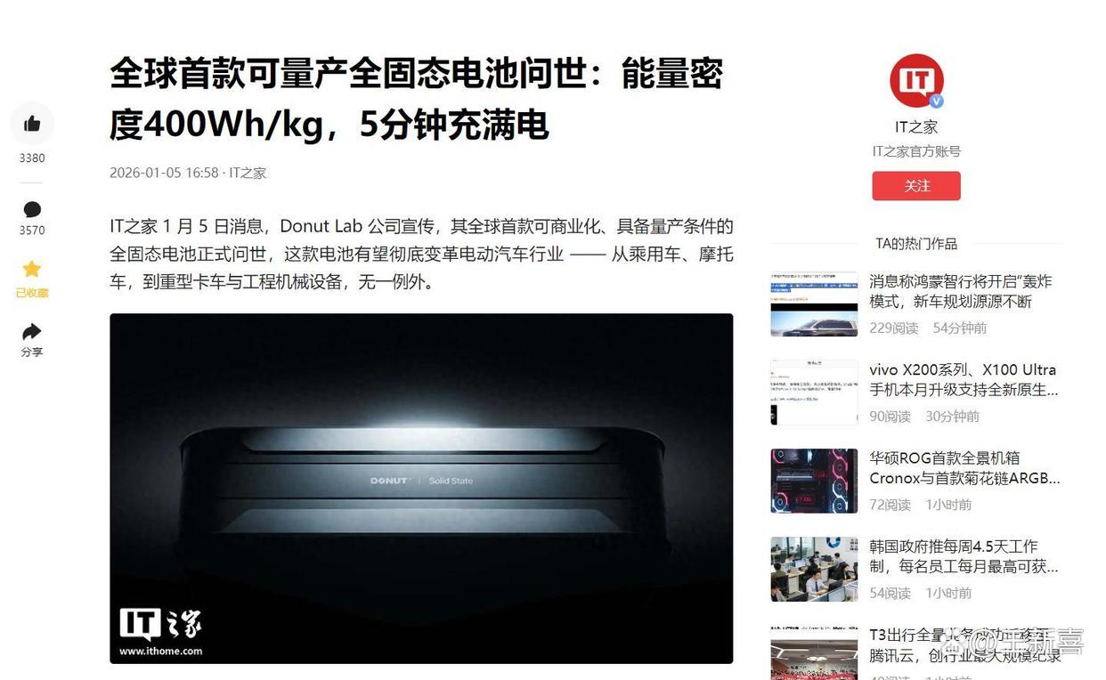 如果Donut Lab有能力攻克一个世界级难题,那么欧洲就不会选择退回到燃油车路线,也不会觊觎中国的电池技术了,而是直接选择在固态电池领域弯道超车了。