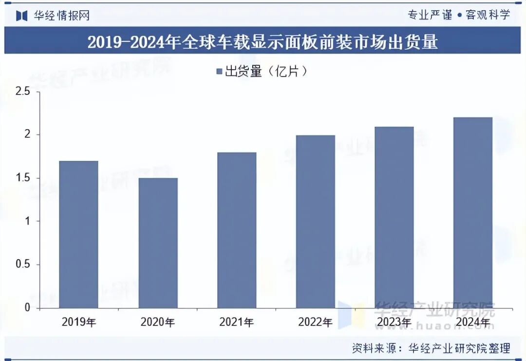 车载屏幕需求将持续放量,对人机交互触控屏的需求激增,数据显示,全球车载显示面板前装市场出货量呈现上涨态势,2024年全球车载显示面板前装市场出货量约为2.2亿片。