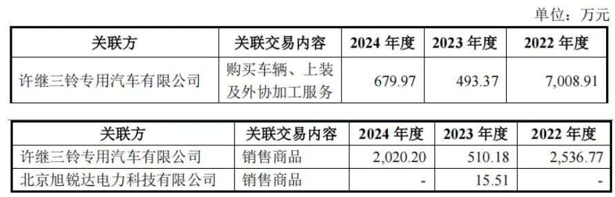 里得科技参股公司许继三铃系公司主要客户、供应商。报告期内,公司关联销售的金额分别为2,536.77万元、525.69万元和2,020.20万元,占营业收入的比例分别为6.05%、1.52%和5.09%;关联采购的金额分别为7,008.91万元、493.37万元和679.97万元,占当期营业成本的比例分别为26.62%、2.53%和2.93%。