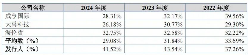 报告期各期,公司主营业务毛利率分别为37.28%、43.58%、41.53%,2023年毛利率43.58%较上年增长明显,主要由于营业收入结构变动引起的。公司毛利率水平高于与三家同行业可比公司33.69%、31.84%和29.08%。
