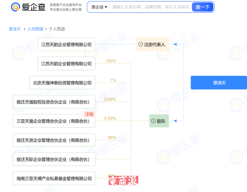爱企查App的信息显示,截至目前,章泽天名下直接关联9家企业,在其中多数企业中担任执行董事兼总经理、董事长等核心管理职务;与此同时,她通过间接持股的企业数量达数百家,业务范围广泛覆盖互联网、科技、消费、医疗等多个高增长赛道。