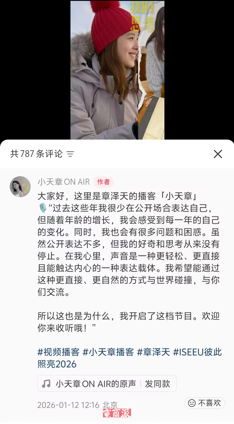 说到底,章泽天做播客,是结合个人成长需求、资源优势和行业趋势的理性选择。这不仅是一次创业,更是一次个人品牌的重塑。