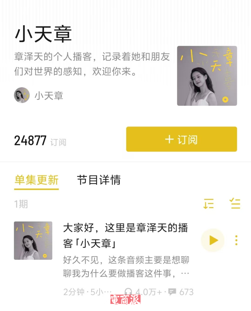 种种迹象叠加,外界才逐渐摸清方向:章泽天要进军播客赛道创业了。