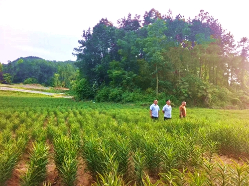 龙山农商银行工作人员走访百合种植户。本报记者马梅若摄