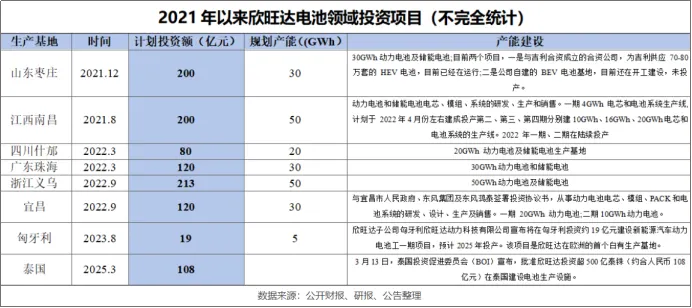 随着2021年9月,两家企业计划投资50亿元建设年产能80万套聚焦HEV及48V轻混系统,欣旺达也真正进入了“产能狂飙期”。2021年以来,欣旺达宣布多个扩产项目,总投资近1000亿元,新增产能超200GWh。