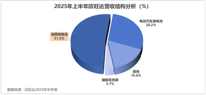 2025年上半年,消费类电池为欣旺达贡献138.9亿元营收,占比超过51.5%,要远高于动力电池。从盈利角度来看,消费类电池毛利率能达到19.63%,也要高于动力电池。
