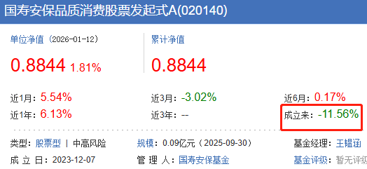 2025年国寿安保品质消费股票下跌6% 成立2年累计跌1成