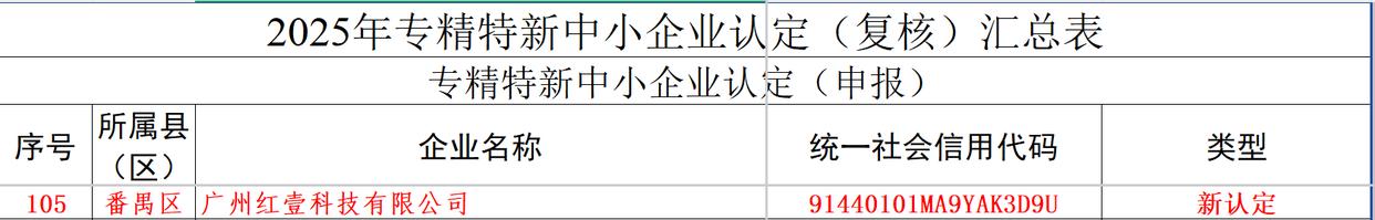 红壹科技荣获专精特新中小企业认定!
